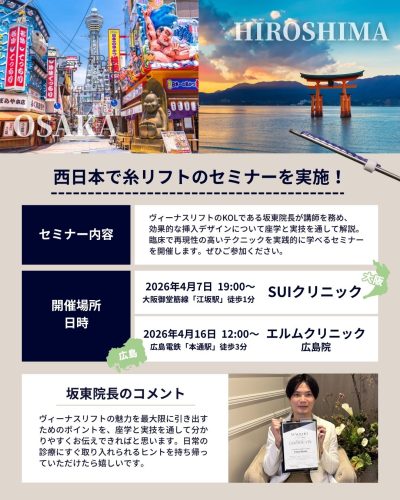 【医師向け】ヴィーナスリフトセミナー開催のお知らせ(大阪・広島)