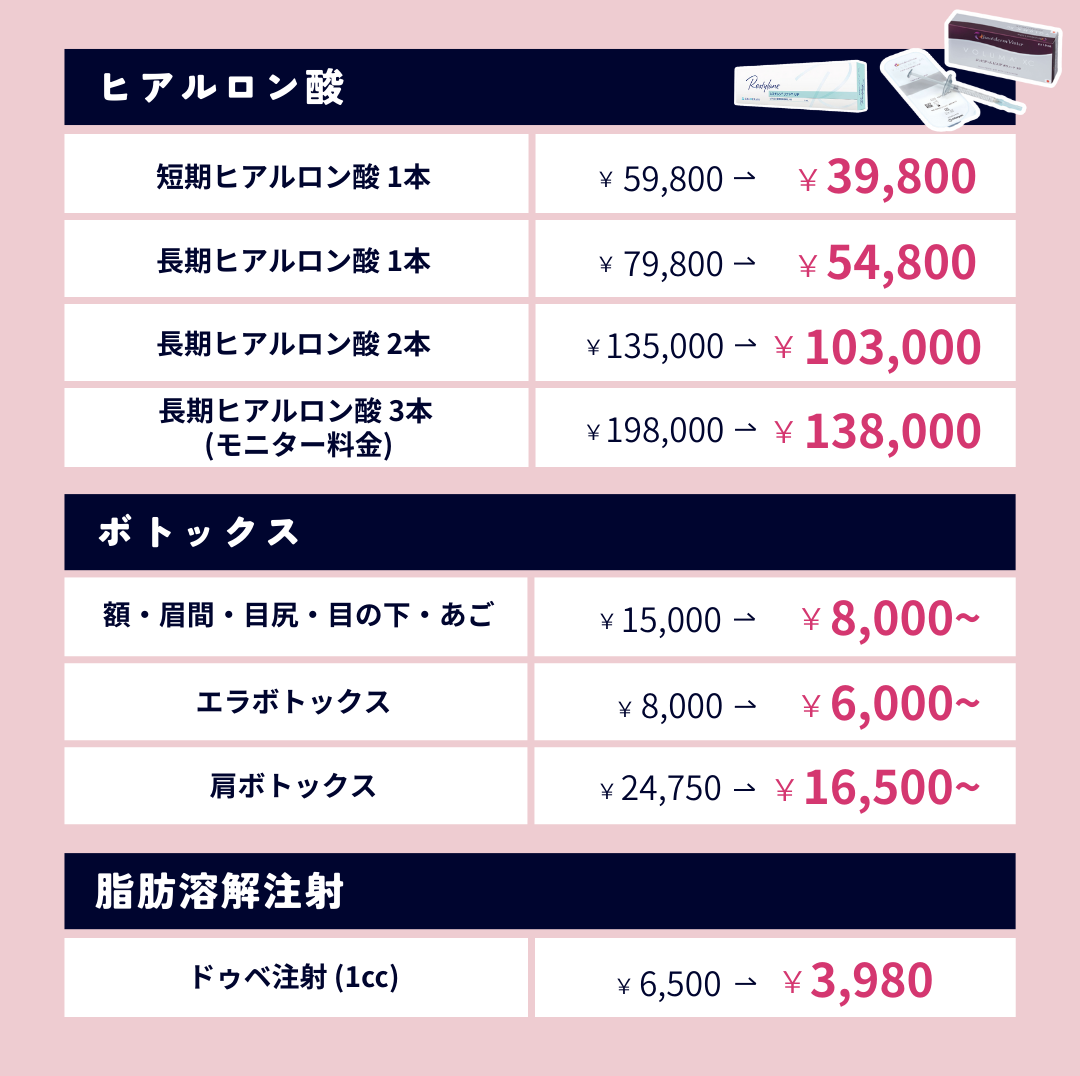 | ヒアルロン酸キャンペーン | 1本 | 特別価格/¥39,800~ |