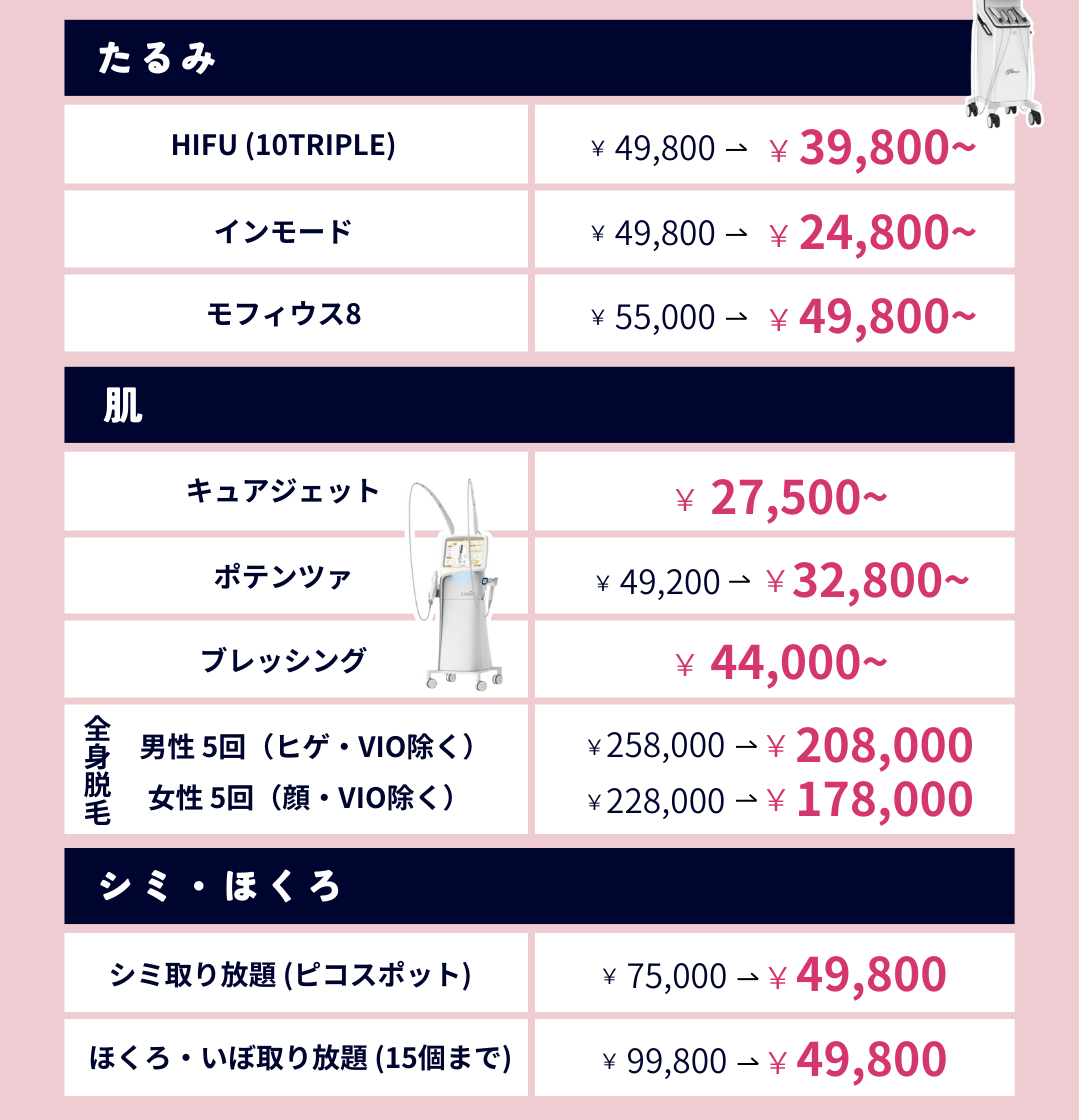 | (ピコレーザー) シミ取り放題キャンペーン | 特別価格/¥49,800~ |