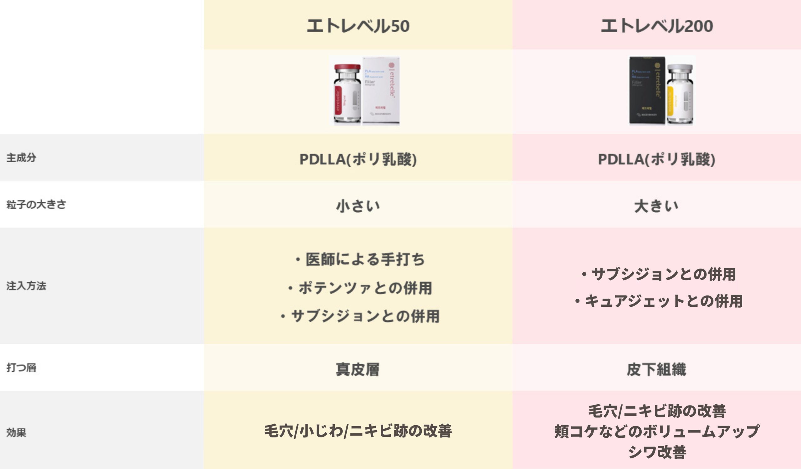 エトレベルはPDLA、PLLAの混合物(PDLLA)で構成されておりコラーゲン生成を目標としています。