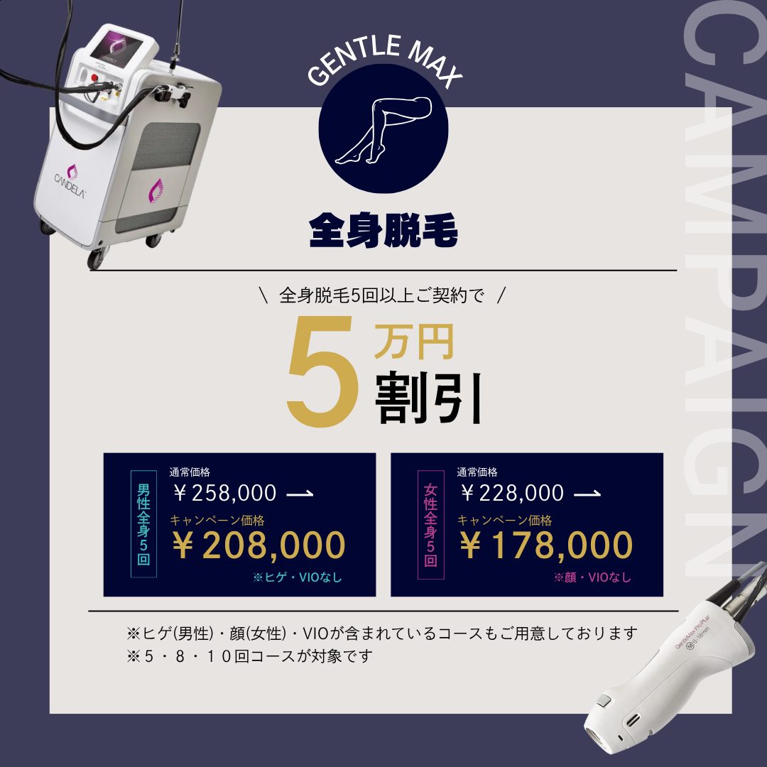 ジェントルマックスプロにも関わらずお値段をお求めやすい価格にさせていただきました。全身脱毛に関してはさらにオープンキャンペーン価格となっております。
