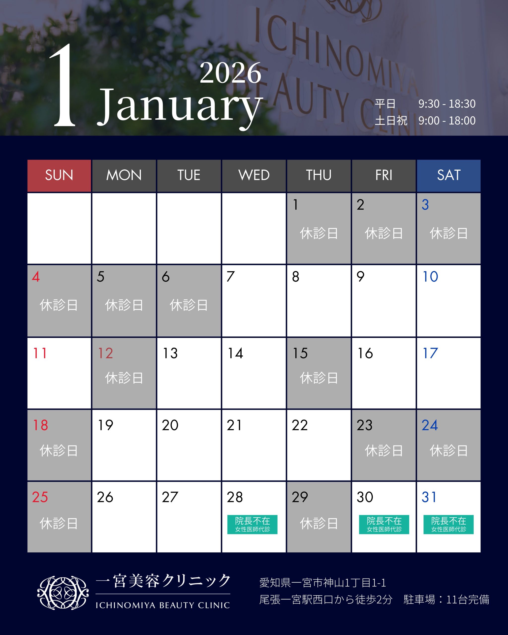 2026年1月の診療カレンダー