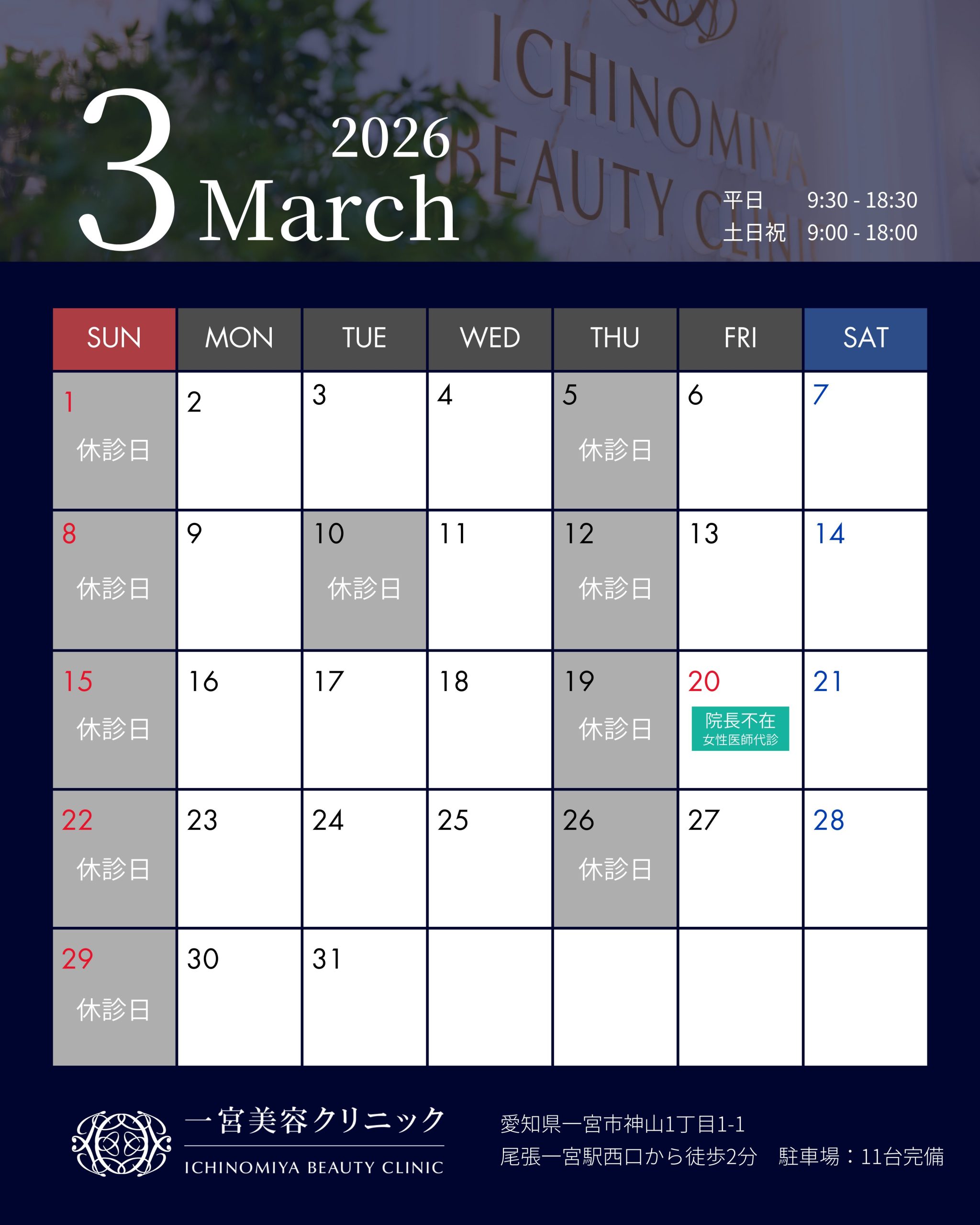 2026年3月の診療カレンダー